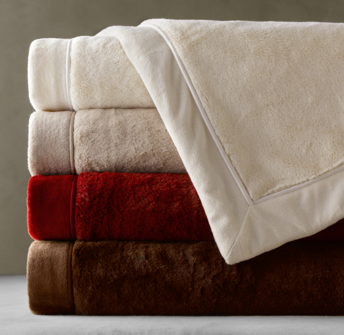 It's the plush throw from Restoration Hardware usually priced at $59, this year they are offering it for a steal at $29 bucks! Rumor has it that this may be the last year they offer them though:( So looks like I am going to have to go back and by some for backups. It is hands down the softest and most durable plush for the price. Even at $60 I would have to say the same. You can throw it in the wash and it keeps its super luxurious feel. Unfortunately they have sold out online, but you can still get them in stores!